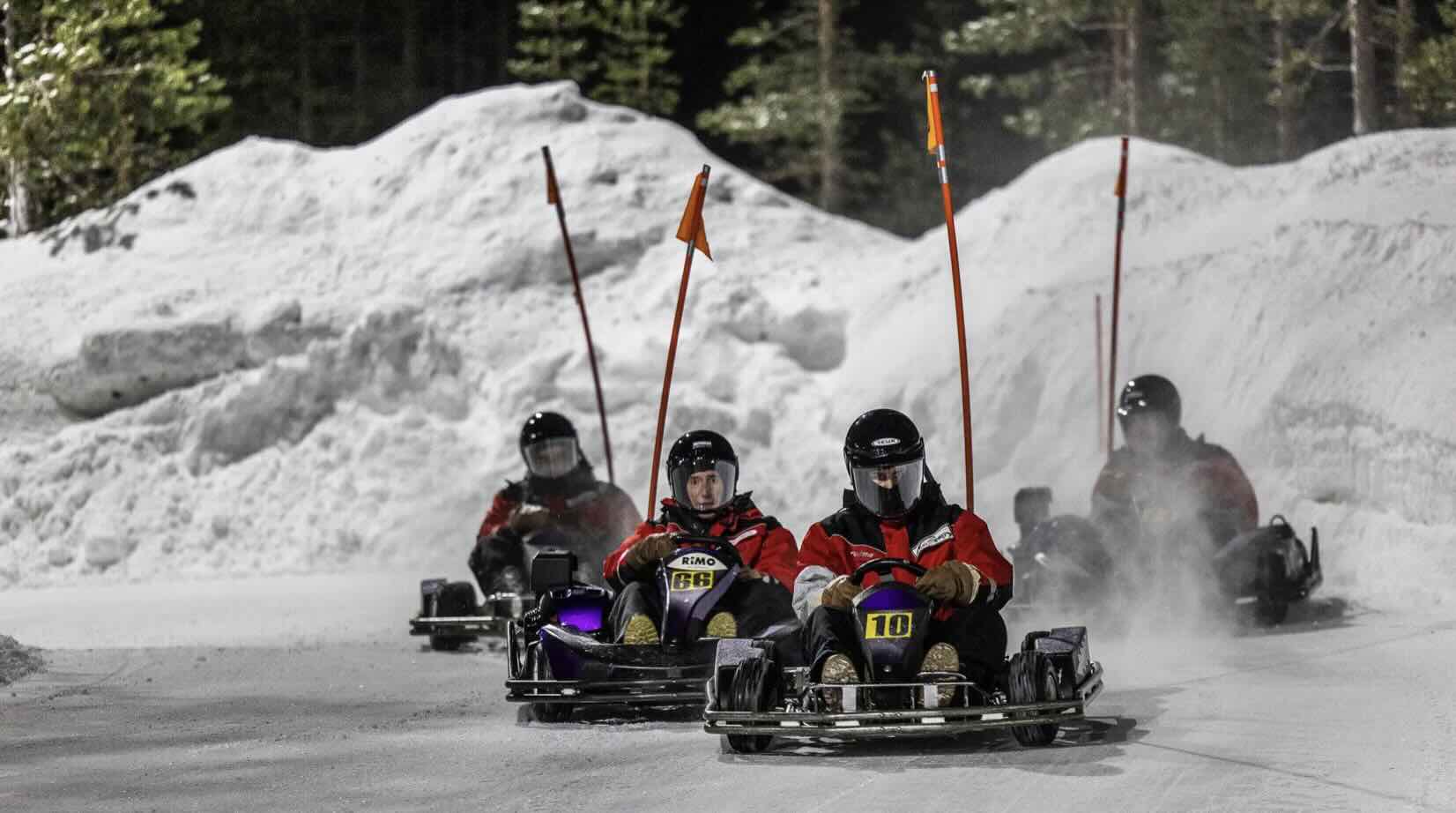 Además, Saariselkä posee uno de los circuitos de karting sobre hielo más grandes de Laponia. Una actividad excitante y llena de adrenalina ideal para pasar un buen rato con los amigos o la familia.